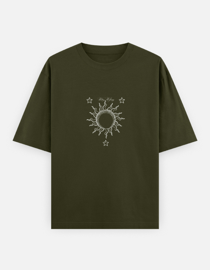 Wear the dawn upon your chest. This oversized Mandala Sun T-shirt is more than fabric—it is light woven into form. Made with 🖤 240 GSM heavyweight cotton, it carries both strength and softness, grounding you while letting your spirit rise.